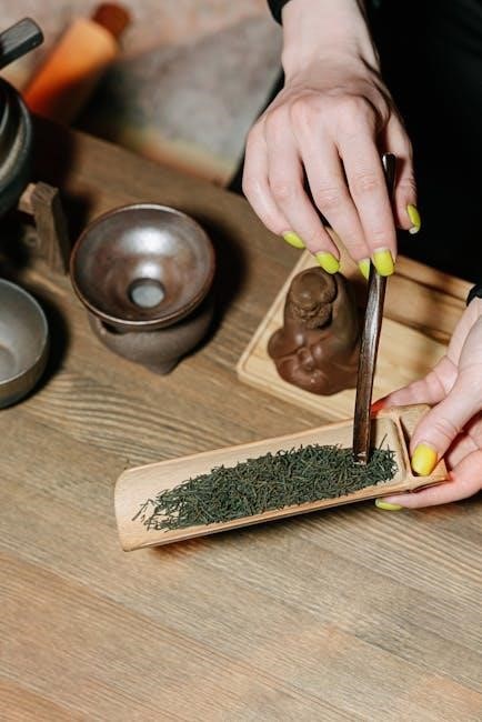 Adjusting the leaf-to-water ratio is key to balancing flavor and strength. Start with 1-2 grams of tea leaves per 8 oz of water‚ depending on the tea type. More leaves intensify the brew‚ while fewer create a lighter taste. Experiment to find your preference‚ ensuring optimal extraction without oversteeping. This customization enhances the tea’s natural qualities‚ making each cup uniquely satisfying and tailored to your palate.